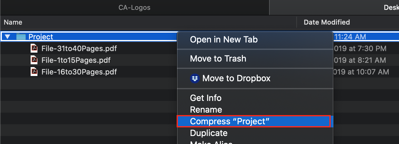 • Press and hold (or right-click) the file or folder, select (or point to) Send to, and then select Compressed (zipped) folder.
