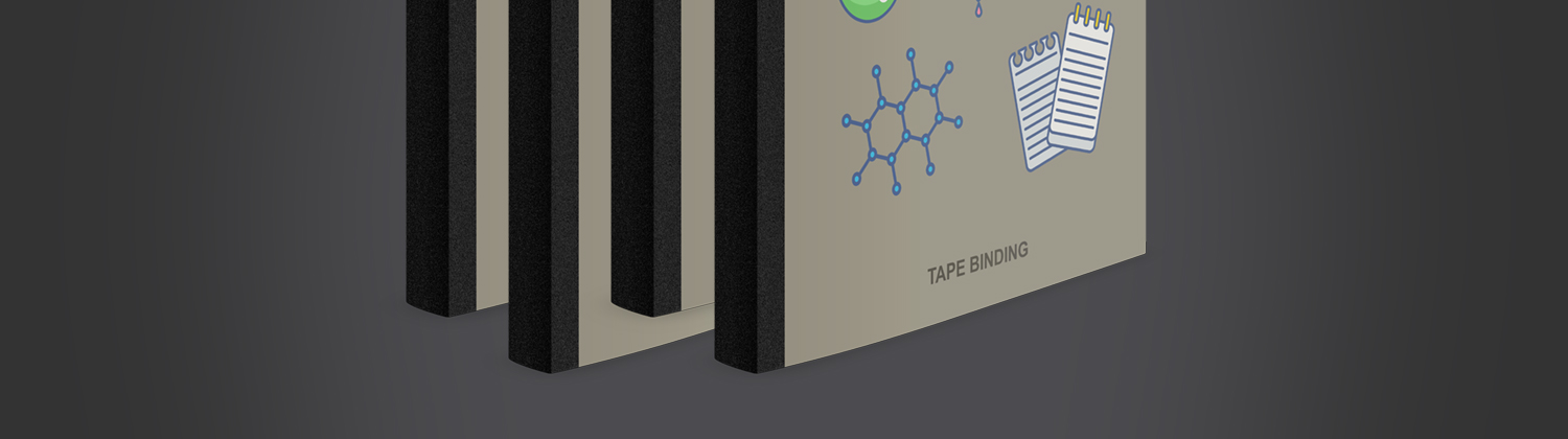 Tape Binding offers a perfect solution for small quantity orders usually needed for conference and training sessions and require little dressing up. In this process, a cloth strip of adhesive tape is used along the binding edge of the document and the front and back covers are added to form a booklet.